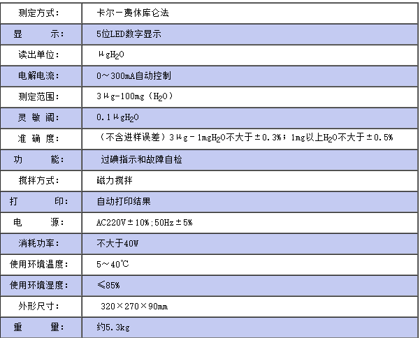 儀器符合GB/T7600;SH/T0246;GB/T606及采用卡爾—費休法測定樣品中水分的有關(guān)標準,儀器采用了先進的自動控制電路,電解電流自動跟蹤控制,外型結(jié)構(gòu)新穎,從而使該儀器工作更可靠,使用更方便,具有分析速度快(一分鐘出結(jié)果)、操作簡便、精度高、自動性強等特點,同時具有自動打印功能,可將實驗結(jié)果、做樣時間、樣品編號自動打印出來,廣泛應用于石油、化工、電力、鐵路、環(huán)保等部門。